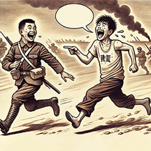 เป็นสำนวนที่ย่อมาการคนที่วิ่งหนีไป 50 ก้าว หัวเราะเยาะคนที่วิ่งหนีไป 100 ก้าว